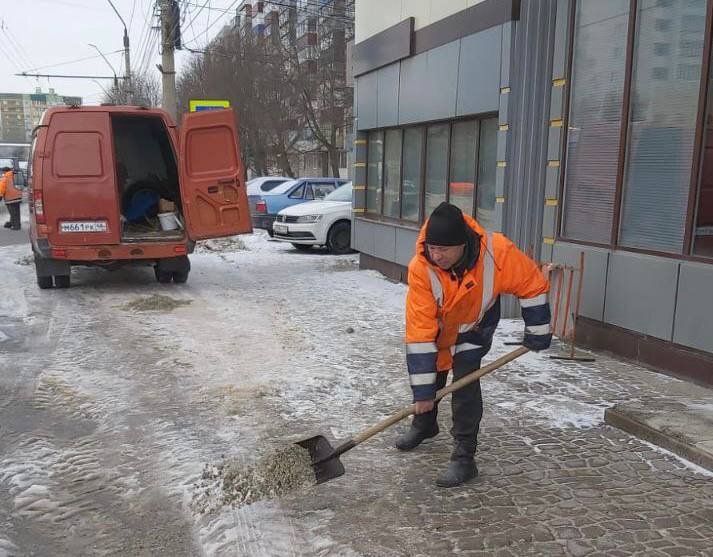 Борьбу с наледью и гололедом ведут 71 рабочий и 33 единицы техники. Отмечено, что должны быть убраны снег и наледь на тротуарах, пешеходных переходах, остановках транспорта и подходах к социальным учреждениям...
