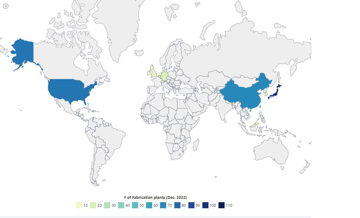 В дополнение к Тайваню, Южной Корее, Японии, Соединенным Штатам и Китаю, страны со значительным (и часто растущим) потенциалом производства полупроводников включают Израиль, Нидерланды, Малайзию, Великобританию и Германию.
