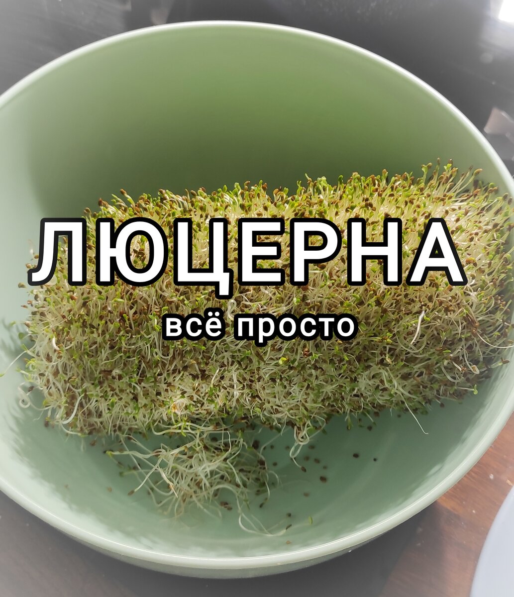 Всего 5 дней от семечки до готового продукта - всё это про ростки люцерны. Всё максимально просто и легко, даже ребенок справится. Вам понадобится: 1. Банка - у меня пластиковая 1,5 л банка из под сыпучих продуктов, вы можете взять любую банку или ёмкость от 1л (стеклянная банка, контейнер из пищевого пластика цилиндрический и т.д.). 2. Крышка для банки с крупными отверстиями - я просто проделала в силиконовой крышке отверстия ножницами, вы можете купить крышку для стандартной банки на озоне или сделать ее сами. Достаточно 4-5 отверстий по 1 - 2 см в диаметре. 3. Марля или бинт - для предотвращения выскальзывания мелких семян при промывании. 4. Лоток, поднос или тарелка, куда можно поставить банку под углом. Этапы выращивания: День 0: засыпать в банку семян, чтобы покрывало дно полностью и залить прохладной водой из под крана. Оставить на 8-12 часов. День 1: отрезать кусок марли/бинта и сложить вдвое, положить на горлышко банки и зафиксировать сверху силиконовой крышкой с дырками.