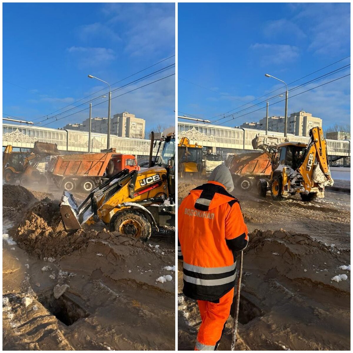 Появились фото с места аварии на водопроводе на Амирхана в Казани