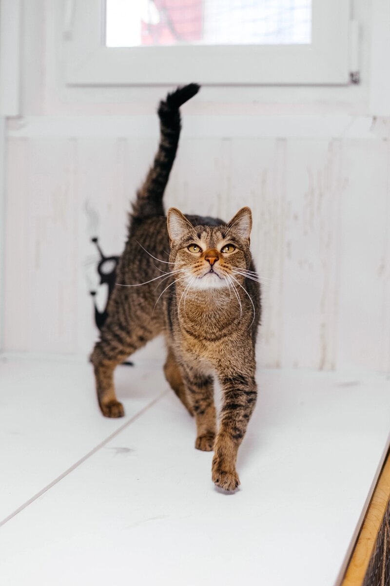 #васяоханскийсчастливыйхвост Вася к нам приехал уже с именем, но имя у него уж слишком распространенное, поэтому мы решили добавить ему фамилию и получилось Вася Оханский) Вася приехал к нам вместе с богаткой Найдой и Урсиком, о котором мы рассказывали утром. Василий не просто кот, а котище с характером. Он у нас смотрит за порядком и, если считает нужным, воспитывает других кошек. Сильно он не дерётся, но высказать недовольство и замахнуться лапой может. Если что не так Вася молчать и терпеть не будет! В общем, типичный кот-ворчун), но он не дедок какой-нибудь, а парень в самом расцвете сил, просто характер у него немного склочный, ну и порядок же должен быть над подконтрольной ему территории. При переезде Вася Оханский был в дурном настроении и мы его даже немного побаивались, но сейчас он освоился и походит гладиться и общаться. Возраст 3-4 года, кастрирован, вакцинирован, обработан от паразитов, приучен к сухому корму и лотку с древесным наполнителем. Нравятся полосатики с