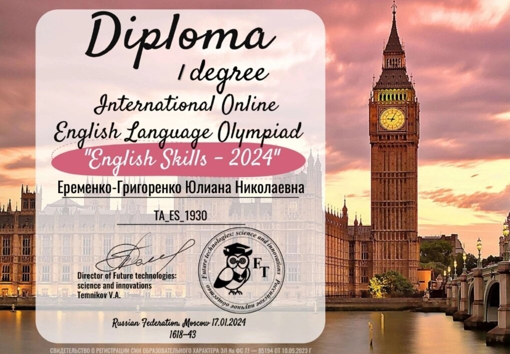 По итогам онлайн олимпиады по английскому языку были награждены: