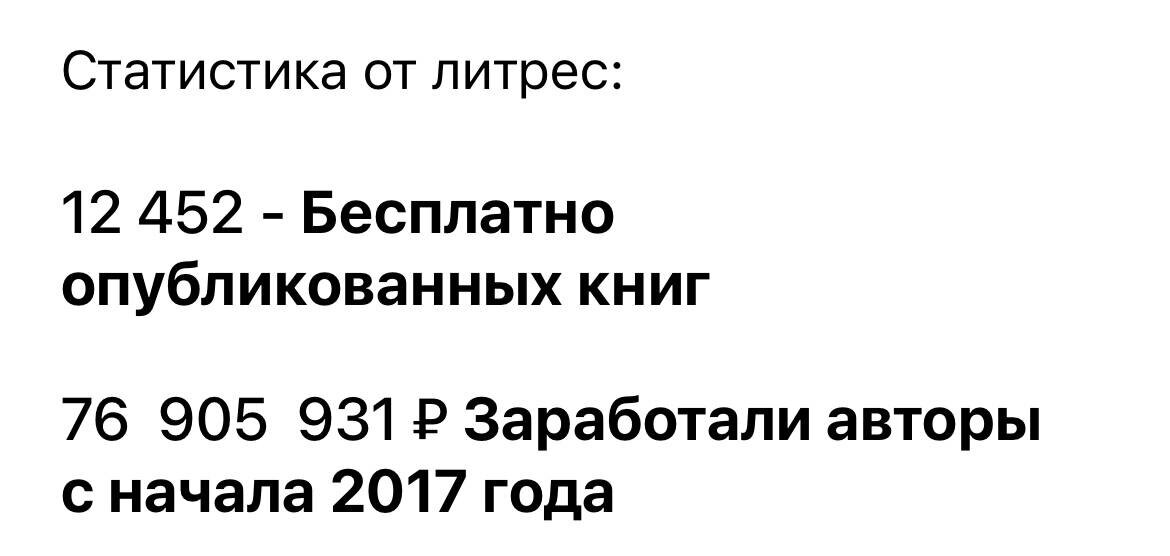 Многие относятся к написанию книги, как к способу реализации творчества. Пишут, когда есть вдохновение, потому что хотят переложить на страницы свой внутренний мир фантазии. Но! Книга может стать ещё и дополнительным системным источником дохода. Я и сама рассматривала книгу больше как инвестицию в свой бренд и бизнес. А оказывается, есть и прямые способы монетизации книги : 1- Есть запросы на написание книги. Точно так же, как есть запрос на написание постов, сценариев рилс для контента. И эта услуга пользуется популярностью. 2- Зарабатывать на продажах своей книги. Только на площадке "ЛитРес", начиная с 2017 года, авторы книг заработали 76.905.931₽. При этом 12.456 книг было опубликовано бесплатно. Простая математика : Начинающие авторы получают в среднем 10.000-25.000₽ за книгу. Если писать по 5 книг в месяц, то это уже минимум + 50.000₽ к вашему основному доходу. И вот тут важный нюанс. 5 книг в месяц на регулярной основе звучит как фантастика. Кто-то подумал даж