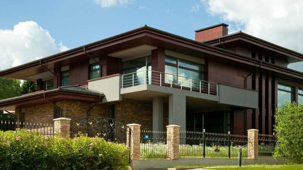Элитный коттеджный поселок «Гринфилд» расположен в 24 км от МКАД по Новорижскому шоссе. На общей площади в 127 га расположены 262 участка. В центре расположено живописное озеро, вокруг которого проложены парковые аллеи. Летом на берегу устанавливаются шезлонги для полноценного отдыха, а зимой водоем превращается в каток. На берегу так же расположен ресторан,в здании самого настоящего замка. Для любителей активного отдыха открыт пляж, волейбольная площадка и теннисный корт. И конечно поселок оснащен детскими площадками для самых маленьких жителей. Поселок находится в центре развито инфраструктуры Новой Риги поэтому все необходимые магазины, развлечения и образовательные объекты находятся в максимальной близости. Для проживания в этом невероятно комфортном месте мы предлагаем вам рассмотреть уже готовый дом с 8 спальнями. Просторный особняк в поселке «Гринфилд» выполнен в современном стиле. Фасад облицован шпонированными панелями с долгосрочной защитой от негативного воздействия окружаю