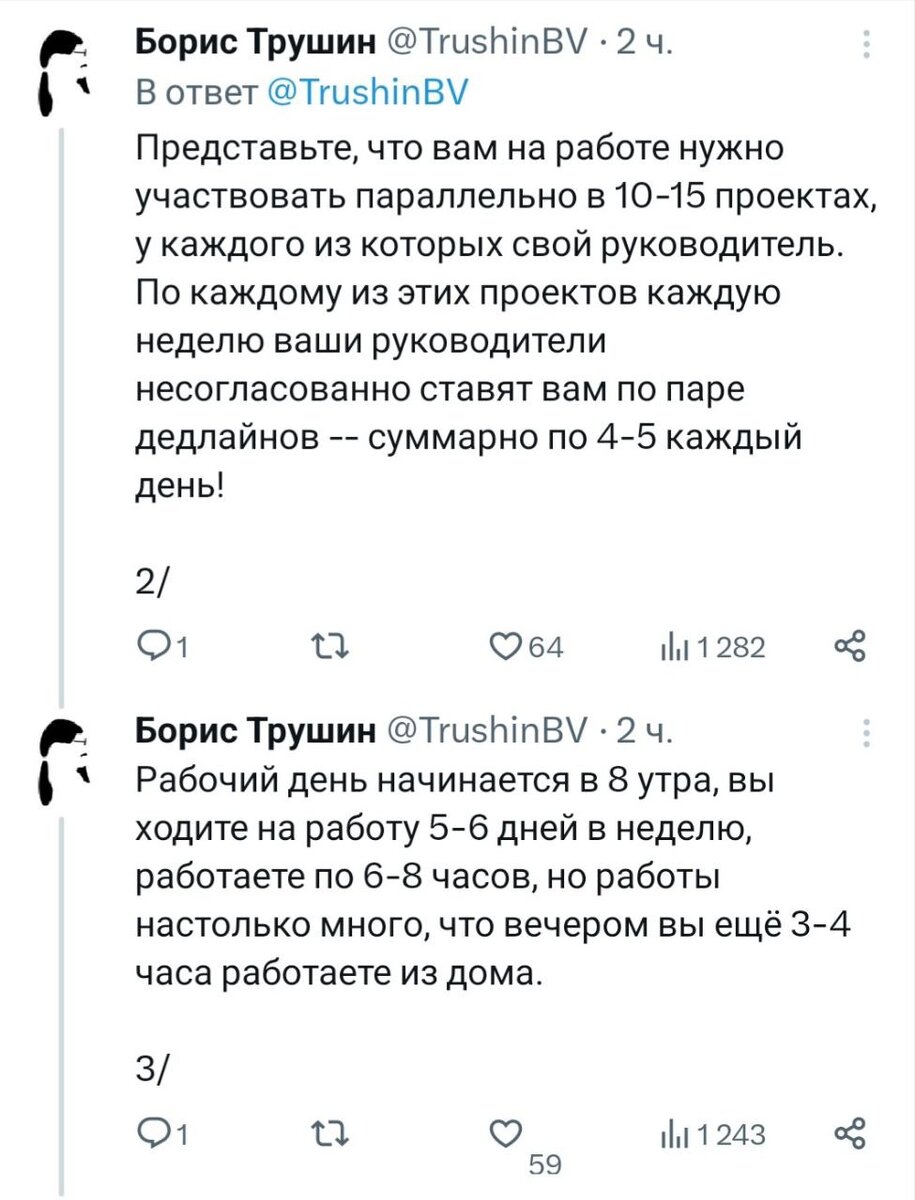Прочитала в сети интересные рассуждения про школу математика Бориса Трушина. Обсудим)) А правда за что, вот это всё надо любить? Смотрим глазами взрослого. Начну по порядку. Ситуация 1. Разгоняемся. Это на самом деле так. Дети учатся с 8 утра. 6 дней или в крайнем случае, 5. Уроки по 6-8 часов. А потом домашние задания дома минимум на три часа. Круто? Про 10-15 проектов и дедлайны прямо в точку)) Идём дальше. Ситуация 2. Отговорки не принимаются. Вы должны были выполнить это задание,-говорит неумолимый учитель. Доводы не принимает или думает, что вы их придумали на ходу)) Ай да Вася, молодец. Хорошо, если ученик привык выкрутиться и не принимает всё близко к сердцу. А если нет? И точно. Больничный вам не положен. Тем более если вы-хороший ученик. Вы и дома будете заниматься, если отпустило. А если вы ученик не очень, то вам и так хорошо. Что вам эти дедлайны? Да чихали вы на них. Тройку-то МарьИванна и так поставит. А то ей же будет хуже. Завуч-педсоветы и всё такое)) Ай да Вася, м
