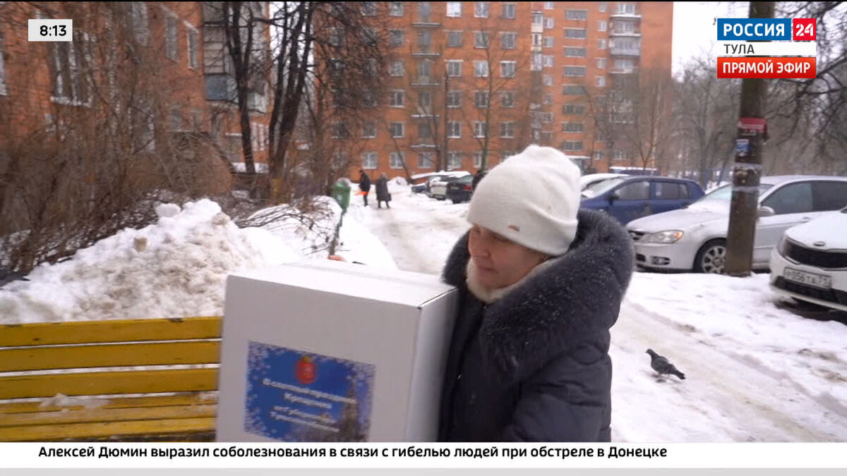 Крупы, консервы, чай и, конечно же, пастила и пряники. По инициативе губернатора Алексея Дюмина к празднику Крещения пожилым одиноким людям передали продуктовые наборы. В подарке всё самое необходимое, среди них: мясная продукция, макароны, сладости и многое другое. Татьяна Абросимова, министр труда и социальной защиты Тульской области: «2024 год это год семьи и, конечно, в этот год мы будем поддерживать и продолжать поддерживать все категории всех наших семей. Но есть такие семьи – одинокие люди, у которых отсутствуют близкие, которые требуют к себе определённого внимания и определённой заботы. Такие пожилые жители в нашем регионе, конечно же, проживают. По инициативе губернатора Алексея Геннадиевича Дюмина мы будем выдавать им продуктовые наборы». Александра Яковлевна, как Вам подарок? «Очень понравился. Большое спасибо Губернатору». Алексею Геннадиевичу Дюмину огромное спасибо» Подарки пенсионерам передали социальные работники. Так, продуктовый набор получила Александра Яковлевна С