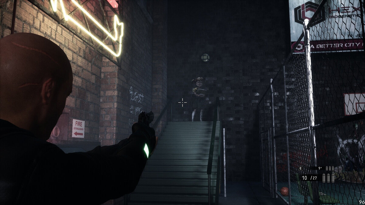 Многие из нас смотрели "Люди в черном" и смогут узнать девочку Тиффани, которая любит тёмные переулки, монстров и вообще постоянно ищет приключения на пятую точку. Вот и здесь можно её встретить рядом с детской площадкой и пачкой зомби, похоже, снова связалась не с той компанией или вообще её основала)