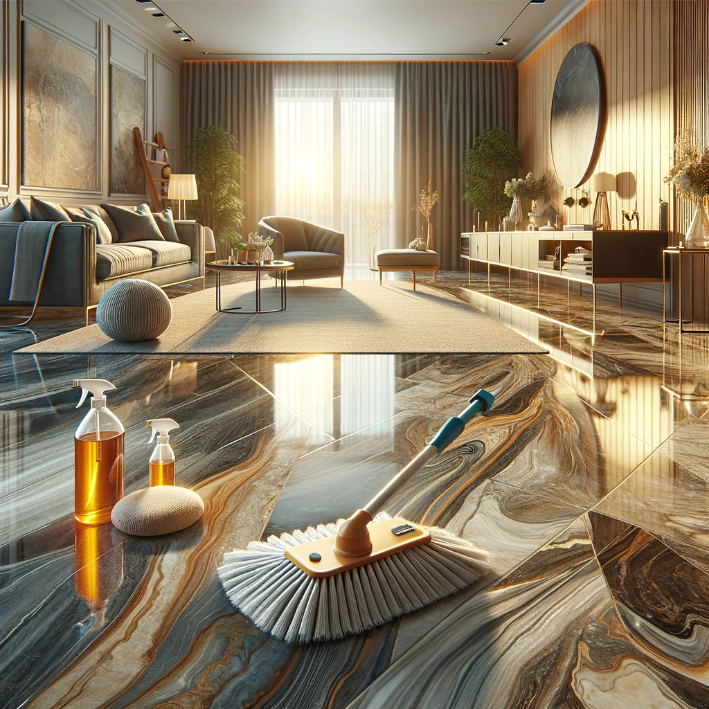 Для ухода за полами из искусственного камня существуют специальные чистящие средства. Они помогают сохранить первозданный блеск и защищают поверхность от бытовой химии.
