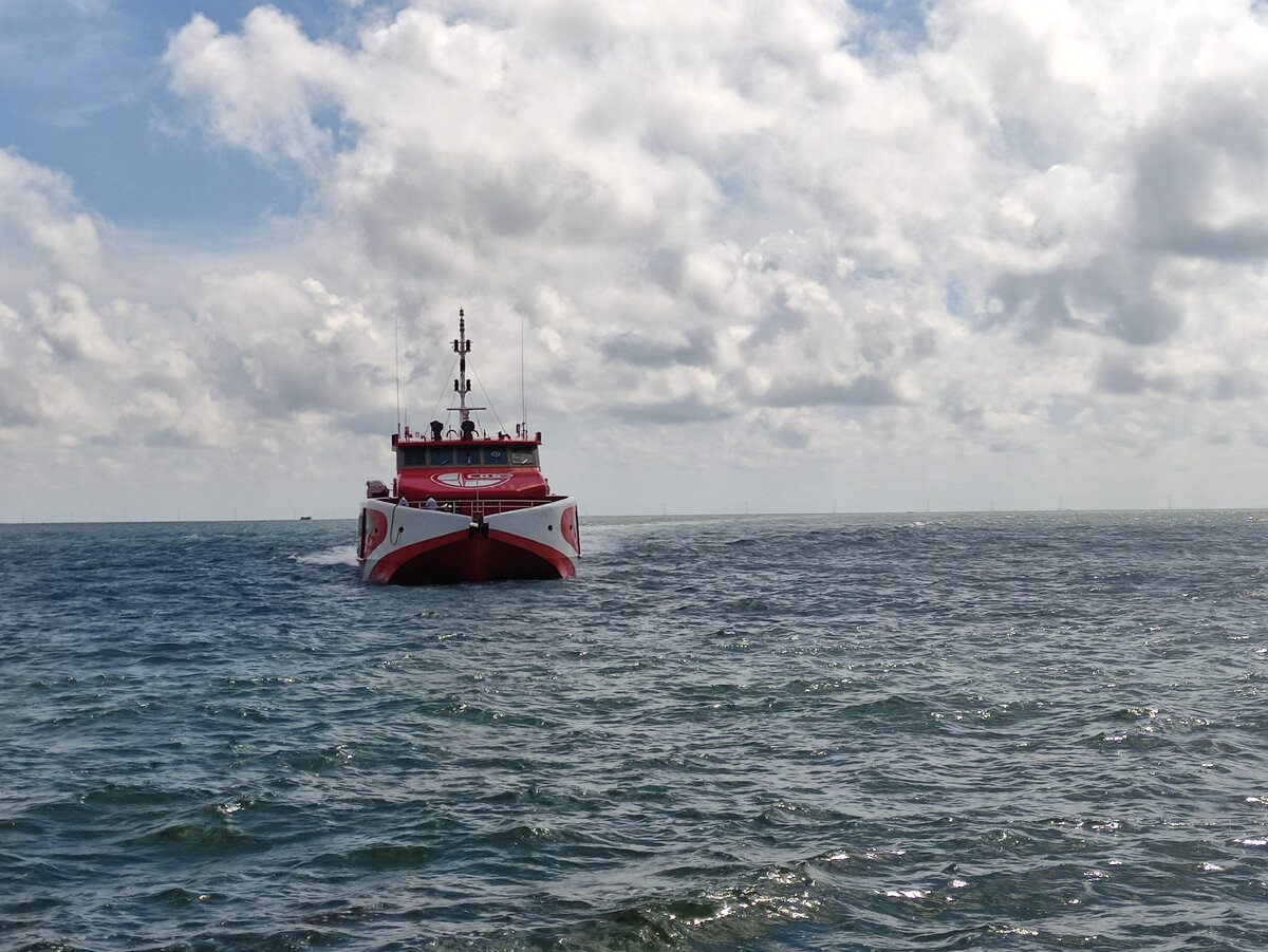 Сам паром, точнее катамаран, оказался очень быстрым и комфортабельным судном с закрытым салоном и открытой палубой, а также отсеком для перевозки байков и крупного багажа. Паром идёт два часа, и в уютном кресле с большим пространством для ног этот переезд не отнял много сил.