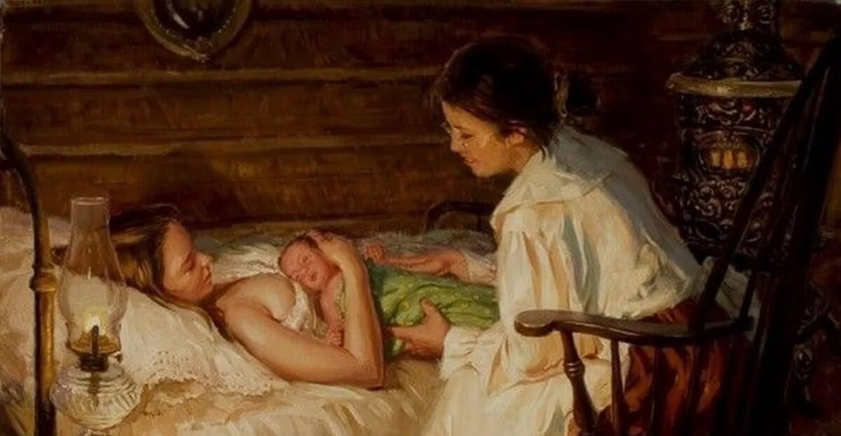 Вася, сидевший с мокрым лбом, у кровати Ульяны, которой пришёл срок рожать удивленно открыл рот, увидев входившую Анну.