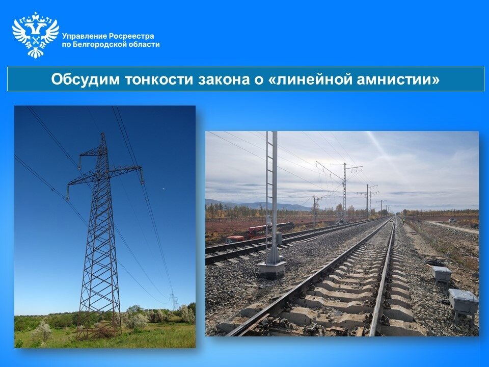 По словам заместителя руководителя Управления Росреестра по Белгородской области Екатерины Репиной, закон о «линейной амнистии» призван обеспечить качественный учет и надлежащее содержание линейных объектов в целях бесперебойного функционирования в интересах населения.