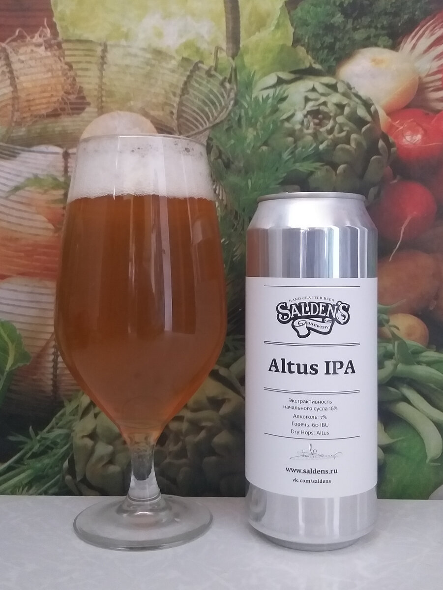 На канале обзор тульского крафтового пива. Salden`s Brewery - тульская крафтовая пивоварня, основанная Денисом Сальниковым в 2012 году. Название Salden`s составлено из первых букв фамилии и имени основателя. Salden’s Brewery варит самые разнообразные сорта пива. Тут каждый сможет найти пиво по своему вкусу. На канале регулярно выходят новые обзоры пива от этой пивоварни. Переходите по этой ссылке для того, чтобы увидеть полный список доступных для просмотра материалов. Сегодня у меня пиво в стиле Indian Pale Ale из серии моноварок с интересным хмелем Altus. "Altus IPA" Пиво светлое нефильтрованное неосветленное непастеризованное Состав: вода, солод пивоваренный, хмель, дрожжи Dry Hops: Altus Объем: 0,5 л. Изготовитель: ООО "Добрый Хмель" (г. Тула) Цена: 229 рублей Дата розлива: 26.10.2023/ Банка №1691 Это новый сорт тульской крафтовой пивоварни, релиз которого состоялся осенью 2023 года. Не помню, чтобы я встречал этот хмель где-нибудь раньше. Слышу о нём впервые. У хмеля Altus нет ос