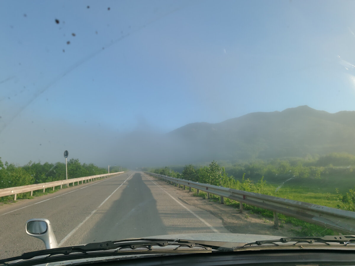 Именно так называется следующая точка нашего маршрута. 6-й пост, а я всё ещё рассказываю про второй-третий день путешествия! Итак, отогревшись и перекусив после плутаний по сахалинским джунглям в поисках Угледарских водопадов, мы отправились дальше. Погода вдоль побережья вгоняла в тоску: +6 градусов, серость, морось. Ух! Сахалинское лето, обожаю! Но вдруг за поворотом из неоткуда появилось солнце и ясная погода (правда не надолго). Вашему вниманию несколько кадров, говорящих о сахалинской погоде, насколько она переменчива и насколько она порой бывает кардинально лучше, как только ты сворачиваешь подальше от холодного Охотского моря. Изначально по плану следующим пунктом на маршруте были Пугачевские грязевые вулканы, но так как день близился к концу было принято решение посетить их позже и следовать в Тихую бухту и наконец-таки заночевать в палатках! Собственно, так и поступили. Несмотря на то, что погодка была не очень, я настоял на ночёвке здесь и скажу сразу, не зря. Ехали к бухте