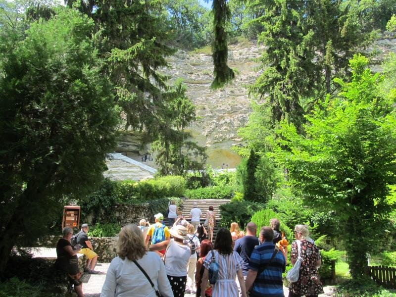 Заканчивая наш трип по Золотым пескам, расскажу немного о нашей экскурсии. Мы купили её в крошечном киоске возле пляжа. Пошли, собственно, за туром в Стамбул, но обломались. Стали выбирать другое, выбрали эту - Монастырь Аладжа и Каменный лес (или Битые камни, как он называется у болгар). Русскоязычную группу собирали по всему побережью. Нас подхватили самыми первыми, а потом долго катали по Золотым пескам аж до Албены. Мне, кстати, эти курорты вообще не понравились. Но вот все в сборе, едем в монастырь. Первые монахи появились там в 12 веке, и использовали каверны в известняковой горе под крохотные кельи. Даже у игумена келья была не более 4 кв. метров, остальные намного меньше. Аладжа - название турецкое, почему прижилось именно оно, не знаю. В переводе значит "пёстрый" - стены были расписаны образАми, что повергло турок-захватчиков в культурный шок. Сейчас там мало что осталось. Есть часть лика ангела на своде одной из церквей, оригинал 14 века. Церкви тоже очень маленькие, да и жи