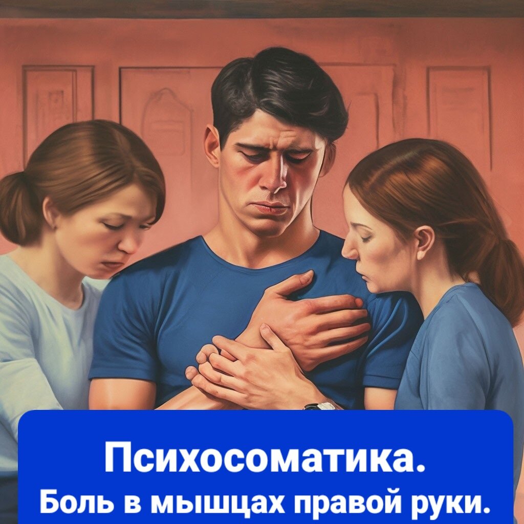 Причина заключается в том, что некоторые аспекты отношений героя в семье, а именно с женщинами ( это бабушка, мать, первая жена, вторая жена и дочь), которые транслировали идею подчиненности мужчины, буквально парализовали его в осознании причин его выбора, а в последствии и самих действий. В подсознании работает программа, что он не может действовать так , как бы ему хотелось. Это бессилие и невозможность контролировать решения и действия в своей жизни, приводит к слабости правой руки и боли в мышцах.