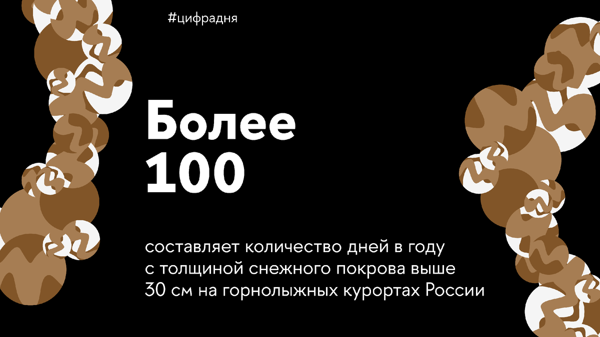 Более 100 составляет количество дней в году с толщиной снежного покрова выше 30 см на горнолыжных курортах России
