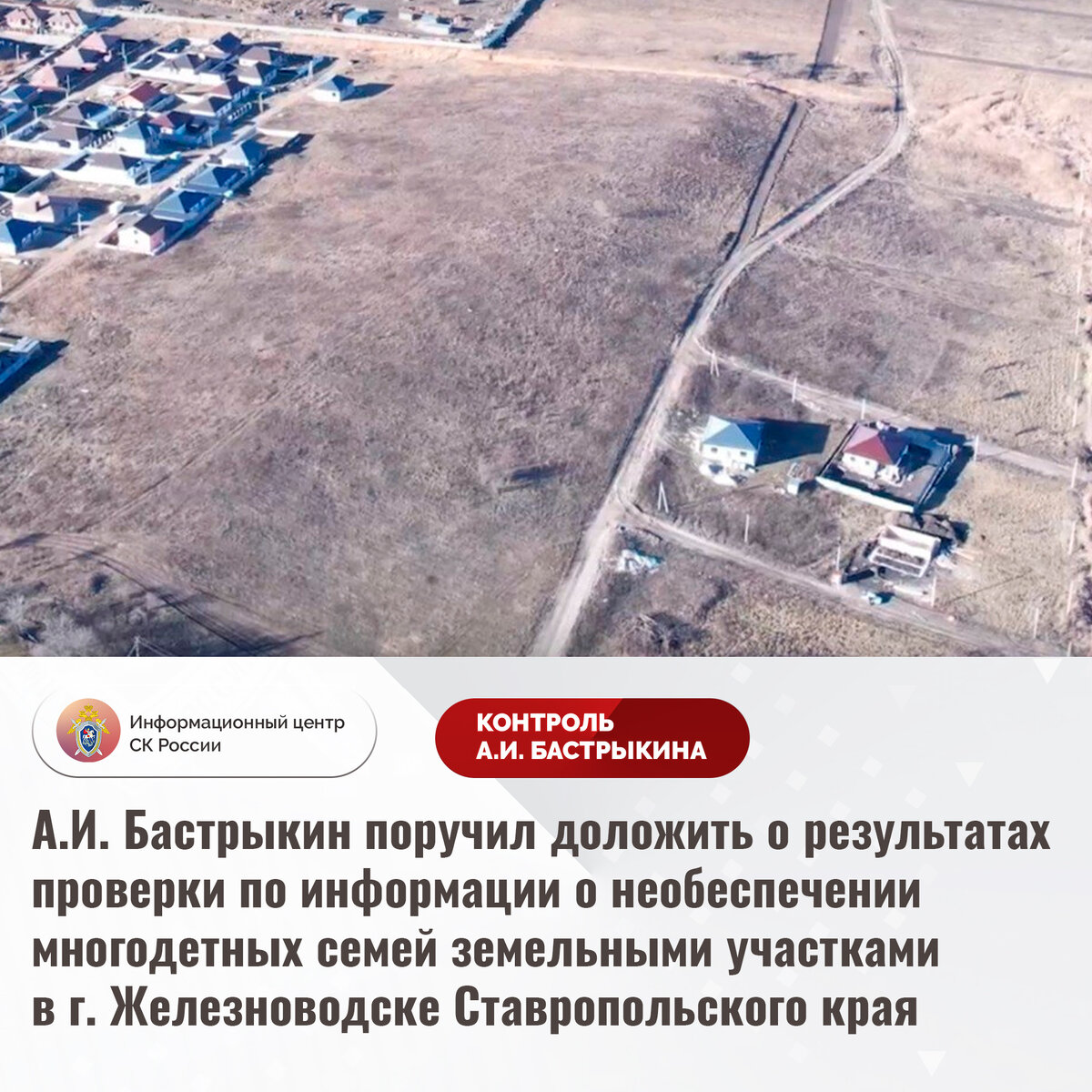 А.И. Бастрыкин поручил доложить о результатах проверки по информации о необеспечении многодетных семей земельными участками в г. Железноводске Ставропольского края
