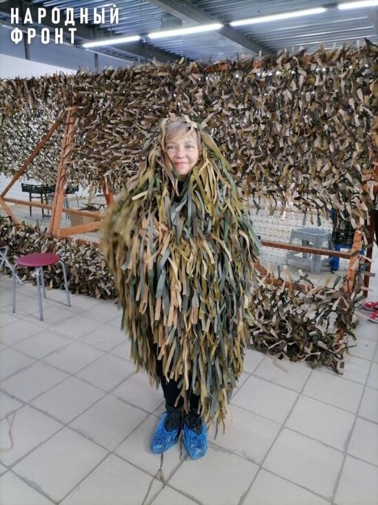 Волонтеры плетут так много что маскировочной сетью можно укутаться, как в одеяло.