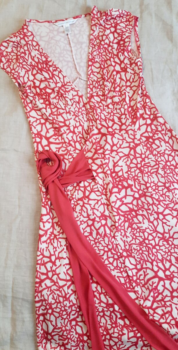 Доброго дня, дорогие друзья!🤗 Итак, на сегодня важное правило рачительной хозяйки - запасайся необходимым в не сезон. Тебе может казаться, что вот настанет зима и накуплю тогда хороших теплых вещей легко. Или, что ближе к лету как наберу льна и шелка досыта. На деле чаще всего оказывается, что на пороге сезона понимаешь, что рискуешь остаться без необходимых вещей. Сегодня будет подборка из шелка, что смогла приобрести за зиму. Платье от известного дизайнера Diane Von Furstenberg. Канонического кроя для этого бренда-на запах, который по мнению модных критиков, подходит всем женщинам. Кстати, соглашусь. В составе только 100 % шелк. Графичный принт, напоминающий морские кораллы. Было у меня несколько платьев от этого бренда. Что то оставила себе, что то продала. Платье летом попробую приручить, хотя в моем гардеробе царит эстетика минимализма. Стоимость покупки (была скидка 50% ) - 399 руб. Следующая вещь будет из разряда очень приятных находок. Сорочка от французского люксово