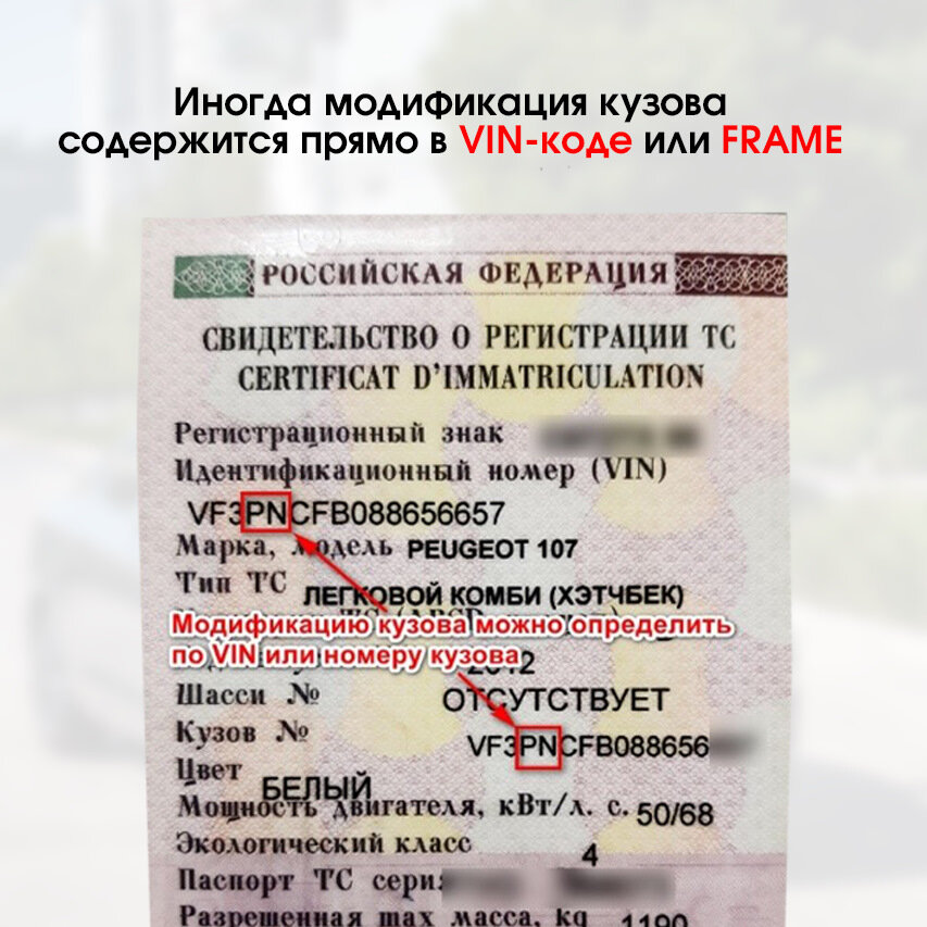 Вместо этого у них FRAME, или номер кузова. Для определения модификации кузова, как правило, его будет достаточно.