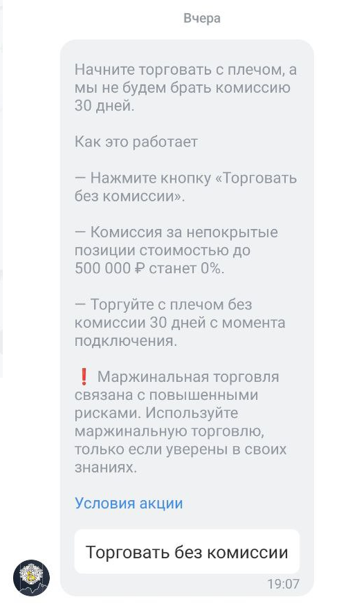 Есть у меня одна слабость - я люблю покупать и продавать активы и зарабатывать на этом свою копеечку. А тут вот брокер в очередной раз предложил уходить в минус и не платить комиссию за это целых 30 дней. Я решила, что грех не согласиться, хотя обычно придерживаюсь правила, что все позиции открытые на заемные средства к ночи должны быть закрыты.
