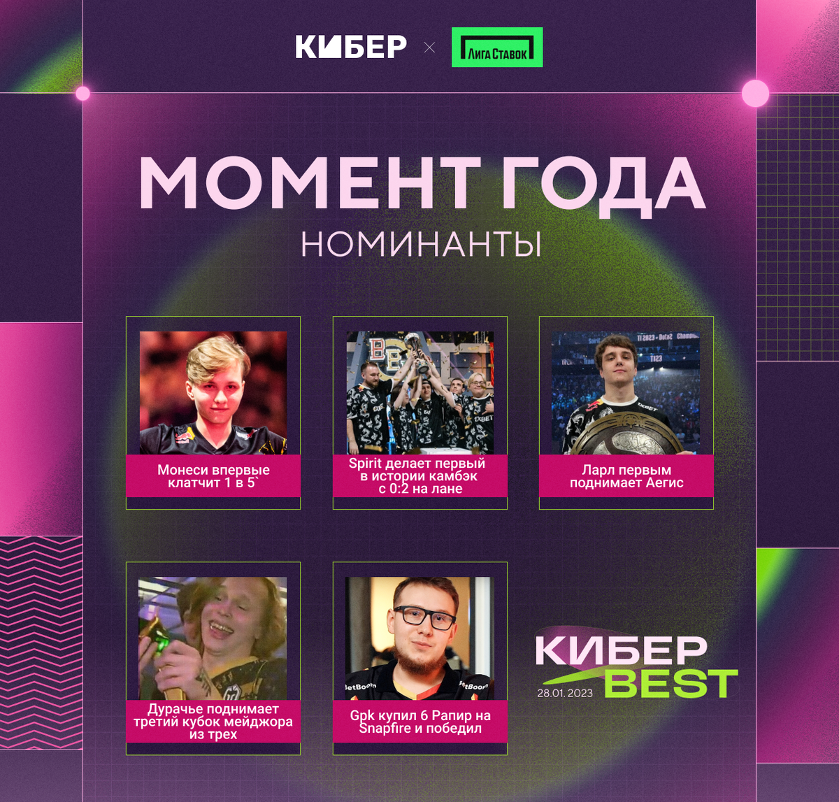 28 января пройдет наша ежегодная церемония награждения премии Кибер Best! На ней мы объявим лучших киберспортсменов и блогеров, а также назовем лучшие игры, сериалы и фильмы 2023 года. Генеральный партнер премии – Лига Ставок.
