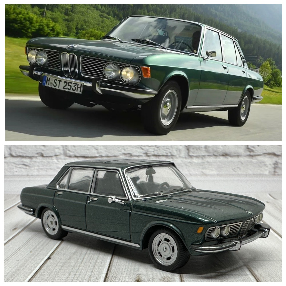 Привет всем любителям автомобилей и ценителям их модельных копий. Конец 60-х годов - это то время, когда в руководстве компании BMW вновь задумались о выпуске большого седана класса “люкс”. Именно такие модели 501 и 502 баварский автоконцерн уже производил в 50-х годах. И вот в 1968 году его время снова пришло. Давайте же познакомимся с BMW 2500 поближе. В модельном ряду этот автомобиль нужен был прежде всего как конкурент Mercedes-Benz W114/W115, который появился в том же 1968 году. Глава бюро дизайна BMW Вильгельм Хофмайстер разработал большой четырёхдверный седан классической компоновки, одновременно строгий, но в то же время достаточно элегантный. Длинный капот, обратный наклон решетки радиатора и сдвоенные передние фары - главные отличительные признаки этой модели. Благодаря тонким стойкам и большой площади остекления водитель получал отличную обзорность. Просторный салон был детально проработан. В нём имелись комфортные эргономичные кресла (с 1973 года снабжаемые подголовн