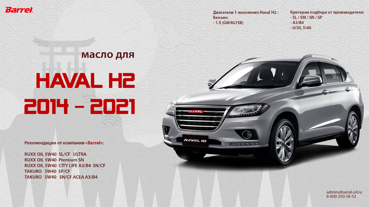 Критерии подбора моторного масла для Haval H2 (1 поколение) от производителя: - SL / SM / SN / SP