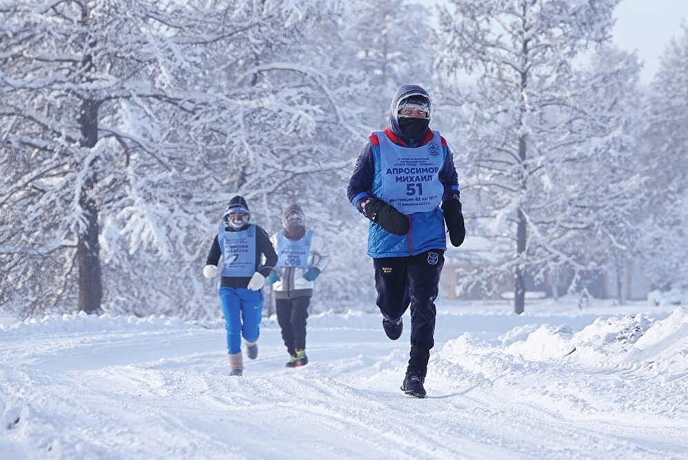В Оймяконе прошел экстремальный марафон при температуре -55°С