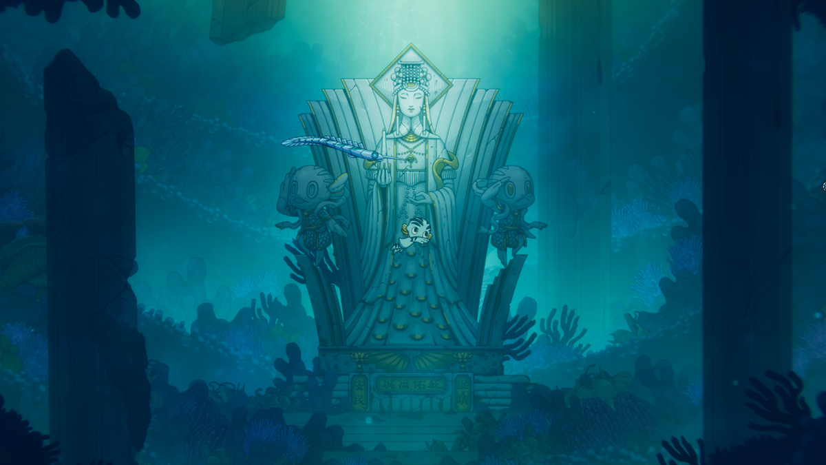 В этом проекте мы играем за рыбообразное существо и исследуем затонувшие города, для оформления которых крайне редко используются эффекты размытия и даже задние фоны прорисованы чётко и детализировано – объём в данном случае создаёт не дешёвое размытие, а цветовые палитры, играющие на пользу воздушной перспективе. Ну, в данном случае водной перспективе. Изюминки стилю придают какие-то арт-деко элементы в оформлении как и интерфейсов, так и некоторых локаций. Стилистически игра правда выглядит весьма уникально. Сами путешествия по этому симпатичному миру разбавлены крайне неплохими комиксными вставками в таком, очень классическом и привычном стиле с обводкой чернилами.