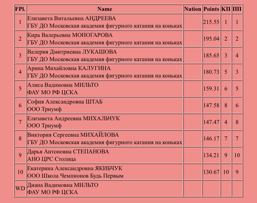 В морозную и солнечную пятницу девушки, выступающие по разряду КМС представили свои произвольные программы. Арина Калугина (Виктория Буцаева) исполнила два четверных прыжка! Четверной тулуп с небольшой помаркой на выезде и чуть более уверенный сальхов. Много сил ушло на квады, во второй половине программы сильно устала, но боролась за каждый элемент и обошлось без грубых срывов. 125.83. 180.73 🥉Валерия Лукашова (Этери Тутберидзе) начала прокат с каскада четверной сальхов-двойной тулуп, затем был риттбергер в 3 оборота и второй квад-сальхов, к сожалению, неудачный — падение. Во второй половине программы что-то могло не так. Падение со второго прыжка в каскаде тройной лутц-тройной тулуп, потом степ-аутом на уже сольном лутце. Была борьба за прыжки, но ни одного каскада не потеряла, сделала все возможное. 123.18, 185.65 🥈Кира Моногарова (Этери Тутберидзе). Умница! В ее программе не было ультра-си, но какой вдохновенный, сильный и чистый прокат. Справилась со всеми элементами, очень хоро