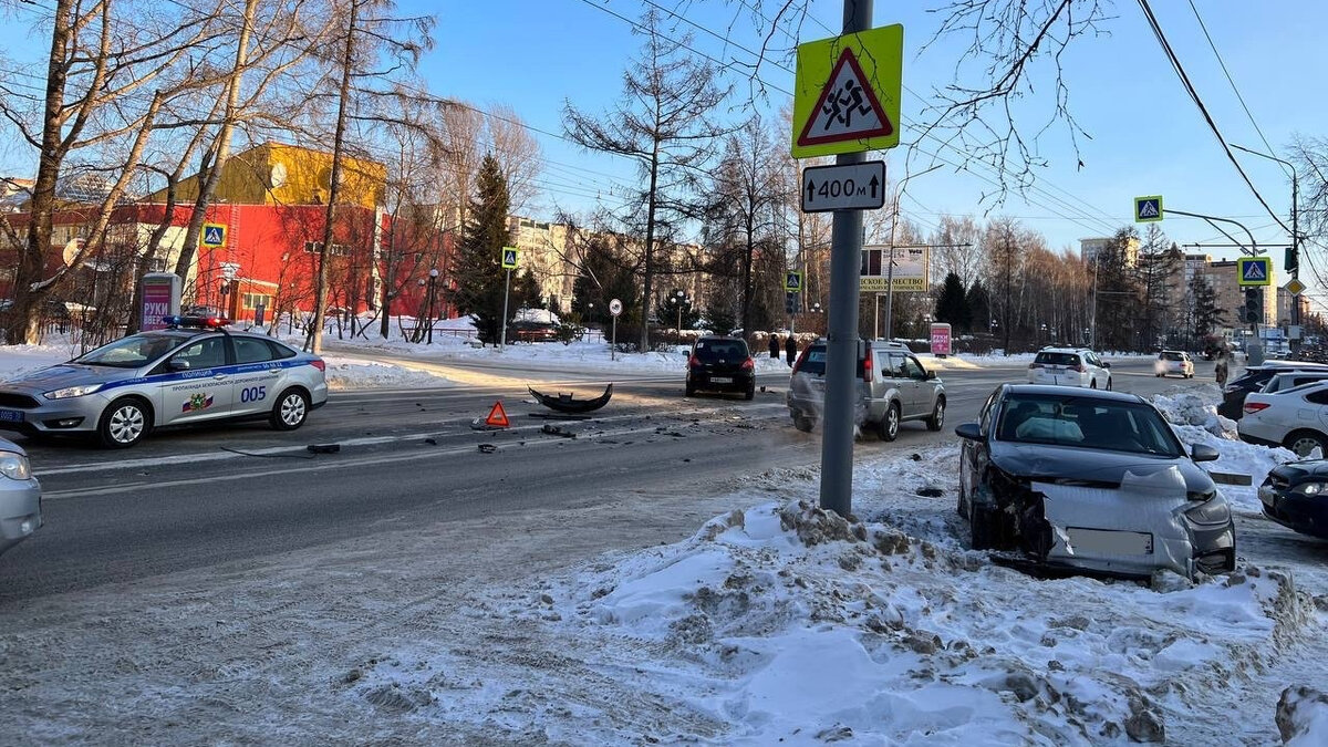 В Томске женщина за рулем Nissan нарушила ПДД и попала в больницу. Об этом сообщает пресс-служба регионального УМВД. Уточняется, что 12 января около 14:45 на улице Красноармейской, 101а произошло столкновение двух транспортных средств Nissan Tiida и Hyundai Solaris. «По предварительным данным, женщина 1985 года рождения, управляя автомобилем Nissan, при повороте налево не выполнила требования дорожного знака "Уступите дорогу". Для осмотра она доставлена в медицинское учреждение»,– говорится в сообщении. Добавим, что обстоятельства происшествия выясняются, на месте работают сотрудники Госавтоинспекции. Фото: пресс-служба УМВД по Томской области.