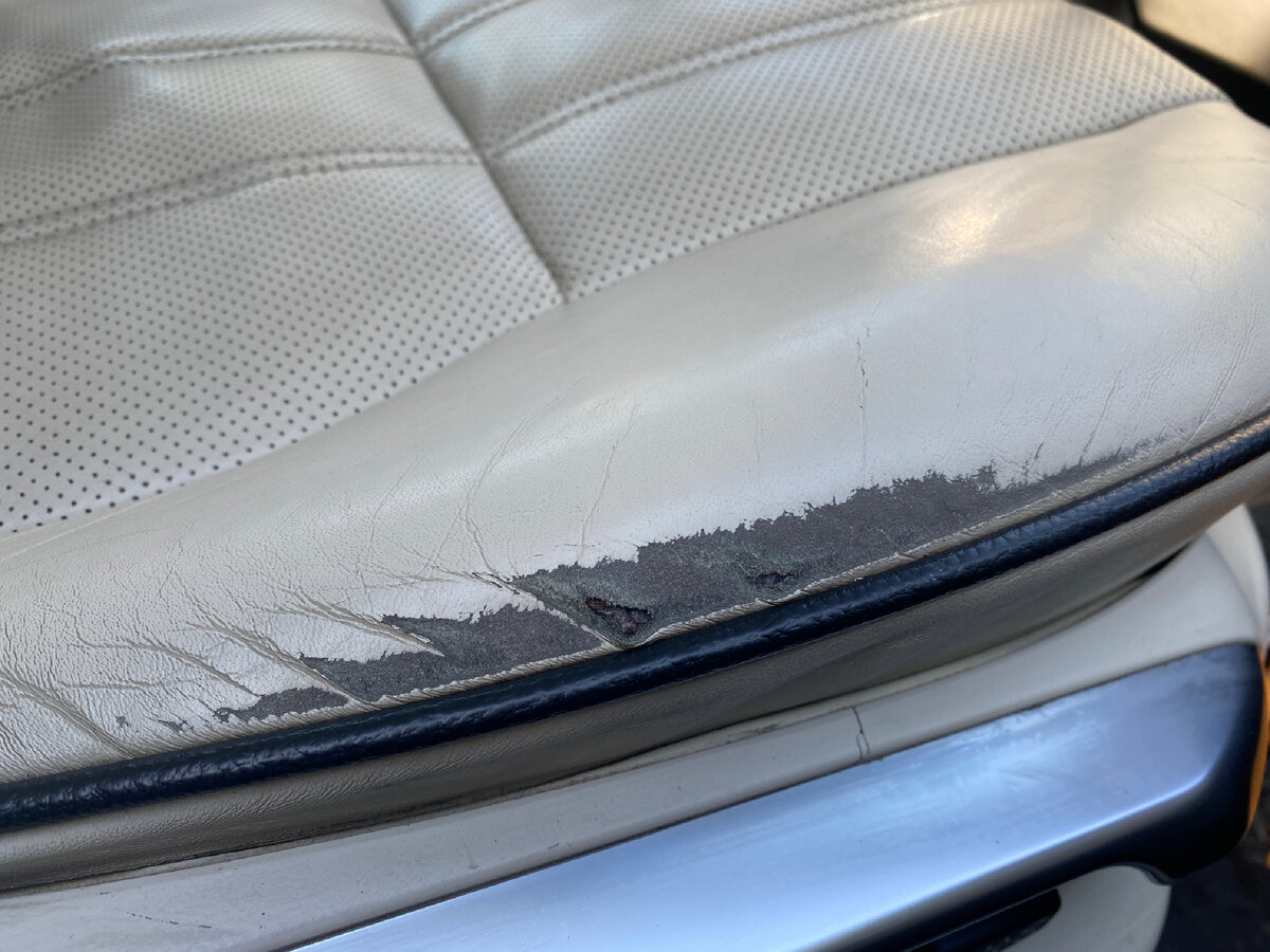 Клиент хотел подготовить авто к продаже, но не хотел перешивать салон авто. Хотя боковинка водительского сидения уже совсем развалилась. Так же нужно было устранить царапины на центральном подлокотнике. 1. Чистим хорошо сидение и подлокотник. 2. Обезжириваем максимально поверхность. Несколько раз обезжириваем место ремонта. 3. Аккуратно прошкуриваем поверхность кожи на месте ремонта, стараясь не разрушить кожу окончательно, пропитываем кожу специальным составом, который склеивает волокна разрушенной кожи. 4. Накладываем на место ремонта шпаклевку. Просушивая слой за слоем, подшкуриваем, выравниваю поверхность. 5. Подбираем краску, подходящего цвета. Подбираем по сидению, по тем местам, которые не будем красить. 6. Наносим базу для краски с отвердителем в несколько слоев. 7. Наносим несколько слоев краски. 8. Наносим лак с отвердителем.