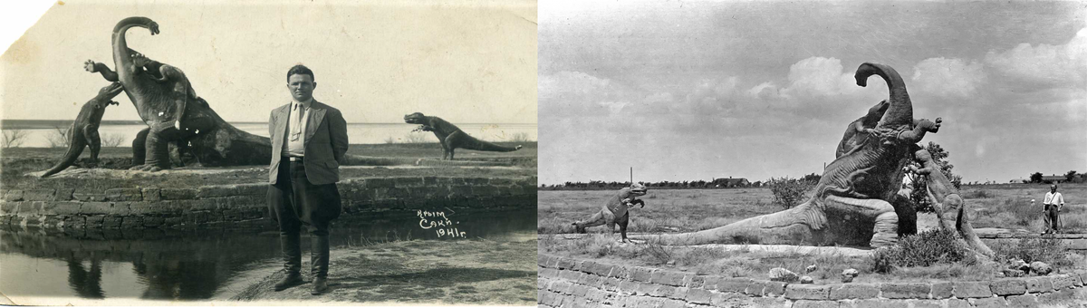 Эпическая скульптура в Крыму изображает борьбу бронтозавра с цератозаврами