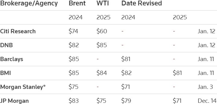 Citi понизил прогноз цен на нефть марки Brent на 2024 год до 74 долларов за баррель Компания Citi Research в пятницу снизила свои прогнозы цен на нефть марки Brent на 2024 и 2025 годы из-за опасений по поводу переизбытка предложения, но подчеркнула, что напряженность на Ближнем Востоке может привести к краткосрочному повышению премии за риск. Citi понизил свой прогноз цен на нефть марки Brent на 2024 год на 1 доллар до 74 долларов за баррель и снизил прогноз на 2025 год на 10 долларов до 60 долларов за баррель. Цены на нефть выросли на 4% в пятницу, поскольку Соединенные Штаты и Великобритания нанесли воздушные и морские удары по военным объектам хуситов в Йемене в ответ на нападения поддерживаемой Ираном группировки на гражданские суда в Красном море. Фьючерсы на нефть марки Brent торговались около 80 долларов за баррель, в то время как фьючерсы на нефть марки West Texas Intermediate в США стоили 75 долларов по состоянию на 11:24 по Гринвичу. Опрос Reuters показал, что цены, вероятно,