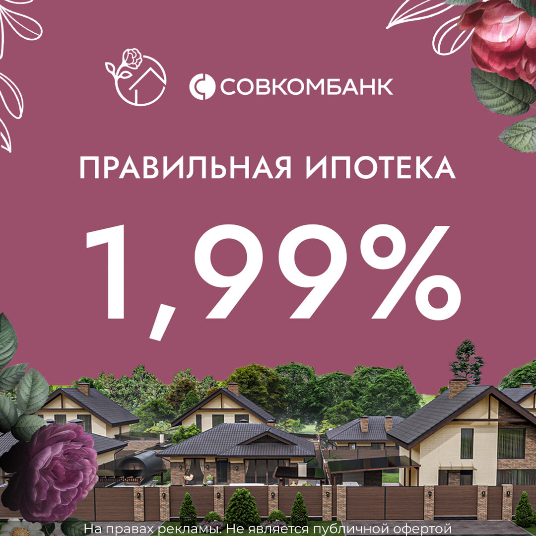 🏡 Встречайте «Правильную ипотеку» на дома в ЖК «Долина Роз» от ПАО «Совкомбанк» по ставке от 1,99%.