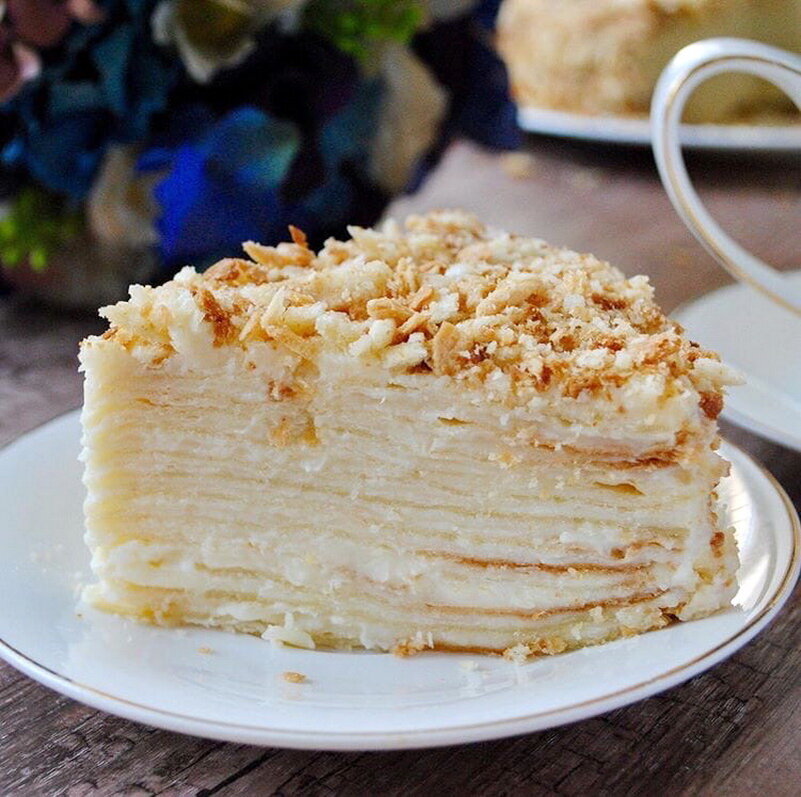 КБЖУ на 100г: 131/7/6/14 ИНГРЕДИЕНТЫ: 🟠Яйца 8 шт 🟠Молоко 400мл 🟠Кукурузный крахмал 180гр 🟠Заменитель сахара по вкусу 🟠Любые орехи для украшения по желанию ИНГРЕДИЕНТЫ ДЛЯ КРЕМА: 🟠Мягкий творог до 5% жирности 250 гр 🟠Молоко 250 мл 🟠Вода 250 мл 🟠Кукурузный крахмал 60 гр 🟠Сухое молоко 30 гр 🟠Заменитель сахара по вкусу ПРИГОТОВЛЕНИЕ: 1️⃣ Готовим основу - блины. Смешиваем все нужные ингредиенты и выпекаем тонкие блины на сковороде с антипригарным покрытием. 2️⃣ Теперь крем. Смешиваем в одной емкости молоко с водой. Добавляем туда крахмал, сухое молоко, подсластитель и как следует перемешиваем. 3️⃣ Ставим на маленький огонь и помешивая, готовим, пока крем не загустеет. Но до кипения не доводим! 4️⃣ Остужаем крем и добавляем в него творог, как следует перемешиваем. 5️⃣ Смазываем блины кремом, украшаем сверху орехами и ставим в холодильник пропитаться минимум на 2 часа. Приятного аппетита 😋 ПП Выпечка & Десерты