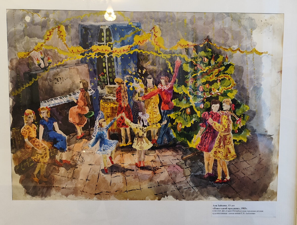 Добрая, волшебная и очень интересная выставка "Рожденственская палитра" представляет работы учеников одной из лучших в России и старейшей в Петербурге детской художественной "Антоновской школы". За свою более чем столетнюю историю школа пережила все напасти 20 века, и не только не исчезла, а наоборот активно развивалась и имеет в числе выпускников и преподавателей немало живописных звезд. Выставка прекрасна! Диву даешься, как в таком юном возрасте ребятам удается не только "круто" изобразить что-то, но и вообще придумать такие сложные сюжетные сцены. Отличная идея со стороны огранизаторов представить вместе и работы давних лет и уже сильно повзрослевших учеников, так и картины нынешних, созданные за последние годы. Это дает возможность сравнить "десткое видение" позднесоветской и современной эпохи: какие разные сюжеты, разные техники и совершенно разную атмосферу передают их рисунки. Не хватило только одного: дополнительной информации о дальнейшей творческой судьбе юных дарований, ко