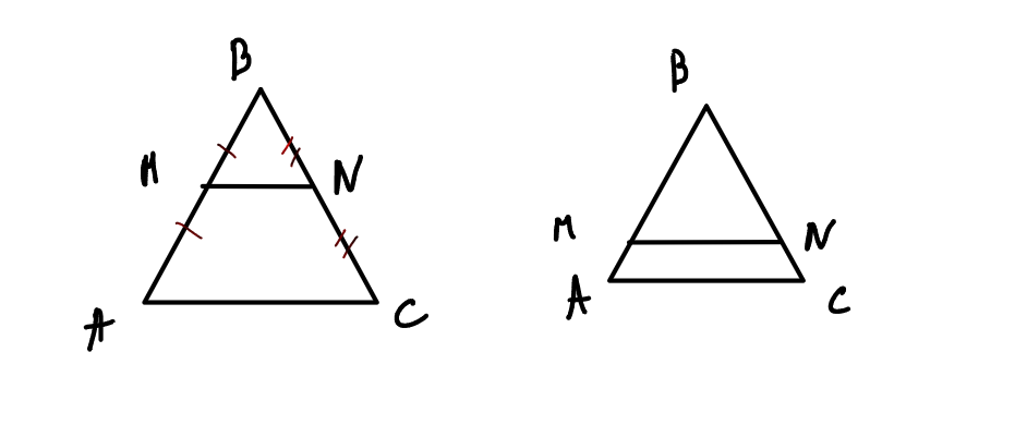 Прорешиваю сейчас на репетиторстве задания ОГЭ со своим учеником и встретила две задачи, которые относятся к одному и тому же 15-му номеру, однако, конечно требуют несопоставимых трудозатрат. Приведу сначала обе формулировки, а затем перейдем к разбору решения. 1. Точки M и N являются серединами сторон AB и BC треугольника ABC, сторона AB=21, сторона BC=22, а сторона AC=28. Найдите MN. 2. Прямая, параллельная стороне AC, треугольника ABC, пересекает стороны AB и BC в точках M и N соответственно. AB=24, AC=21, MN=14. Найдите AM. Вот чертежи к этим задачам И когда ученики видят эти чертежи, то многим из них интуитивно кажется, что задачи похожи. Однако, как мы сейчас увидим по решению, это совершенно не так. Разберемся, сначала, с первой задачей. Она горадзо проще. Здесь нужно только использовать свойство, говорящее о том, что средняя линия треугольника равна половине того основания, которому она параллельна. Ее решение можете посмотреть на картинке. Со второй задачей дела обстоят слож