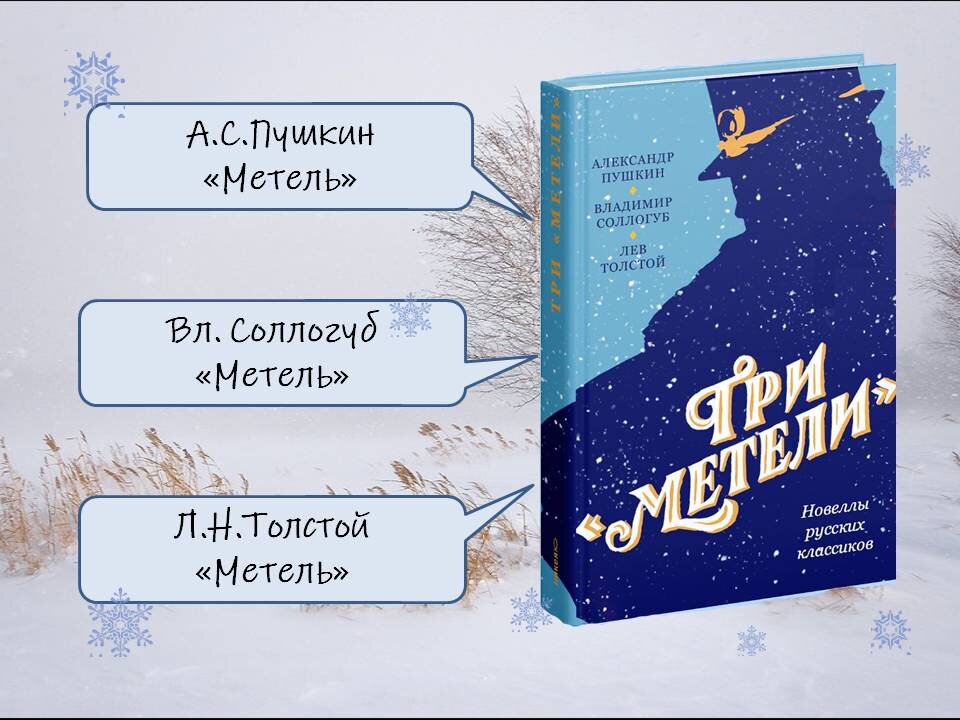 Издательство "Никея" в 2022 году выпустила сборник новелл русской классики, посвященных образу метели в самом разнообразном его воплощении. Интереснейшее предисловие к сборнику написал профессор С.В.Стахорский. В литературе некоторые сюжеты вызывают что-то похожее на творческое эхо. В 1830 году А.С.Пушкин написал свою "Метель". В 1849 году появилась одноименная повесть В.А. Соллогуба, а в 1856 году рассказ "Метель" пишет Л.Н.Толстой. Во всех трёх произведениях образ метели является ключевым. Метель всегда притягивала внимание писателей, потому что это крайне опасное для человека явление природы. Она лишает людей свободы передвижения, заметает дороги, угрожает жизни. В литературных сюжетах метель - событие, часто меняющее судьбы героев. Метель не только пугает, разлучает, сталкивает персонажей друг с другом. Она ломает пространство, останавливает время и меняет людей. Литературную "метелиану", начатую Пушкиным, продолжили А.П.Чехов, А.Блок, С. Есенин, А.Куприн, М. Булгаков, А.Платонов