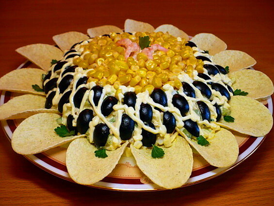 Рецепт салата «Подсолнух» и варианты оформления можно посмотреть ЗДЕСЬ