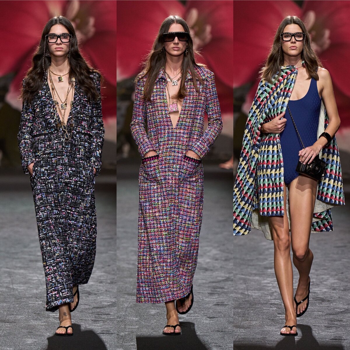 Весенне-летние коллекции для МД Chanel всегда успешны. И коллекция Chanel SS’24 - не исключение. А вот, к слову, несколько последних кутюрных коллекций заставили понервничать... Коллекция, с одной стороны, непринужденная, а с другой, шикарная. Собственно этим и славилась Коко Шанель. За это и любили ее моду. Непринужденные твидовые блейзеры, богемные платья с глубоким вырезом, накидки, деним, шорты, бесконечный напуск и даже асимметрия. Ну и, конечно, аксессуары, аксессуары и еще раз аксессуары! Коллекция вдохновлена садами модернистской виллы Ноай в Йере, спроектированной архитектором Робертом Малле-Стивенсом для известной четы аристократов Шарля и Мари-Лор де Ноай в 1923 году, которые очень тесно дружили с Габриэль Шанель. Да и не только с ней - вилла славилась богемными тусовками, где всегда можно было встретить писателей, художников, поэтов и дизайнеров. Что ж, теперь понятно, откуда эти асимметричные подолы у юбок и геометрический принт. Коллекция называется «Ода своб