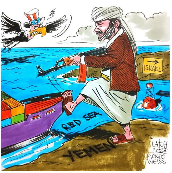 Рисунок-комментарий левого бразильского художника Карлоса Латуффа к конфликту в Красном море