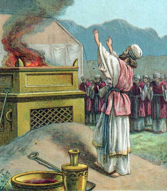 «И вели сынам Израилевым, чтобы они приносили тебе елей чистый, выбитый из маслин, для освещения, чтобы горел светильник во всякое время; в скинии собрания вне завесы, которая пред ковчегом откровения, будет зажигать его Аарон и сыновья его, от вечера до утра, пред лицом Господним. Это устав вечный для поколений их от сынов Израилевых» (Исх. 27:20, 21).