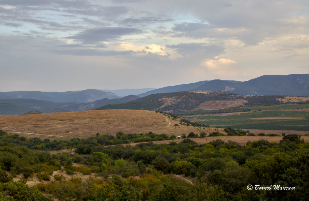 Птицы притихли в кронах готовясь к ночи. Последние отблески солнца окрасили округу золотом, а небо снова приобрело фиолетовый оттенок, темнота медленно наползала с вершин.