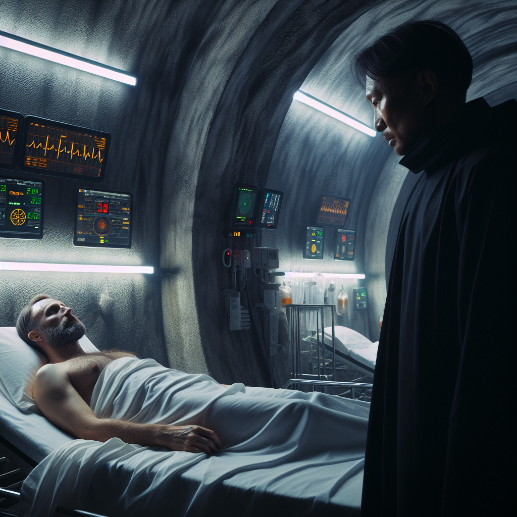 Лучи слабого света проникали сквозь пыльное стекло маленького иллюминатора, освещая бледное лицо Калеба, лежащего на белоснежной койке Госпиталя Алтума. Отшумели тревоги прошедших часов, когда он вновь взыскал приют в чреве Матери-Земли после роковой вылазки на иссеченную ядерными шрамами поверхность. Звуки, давно утраченные в бесконечности подземных коридоров, мерно пульсировали в ушах Калеба – это аппараты поддержания жизни на миг соединили его судьбу с нитями постапокалиптического мира.