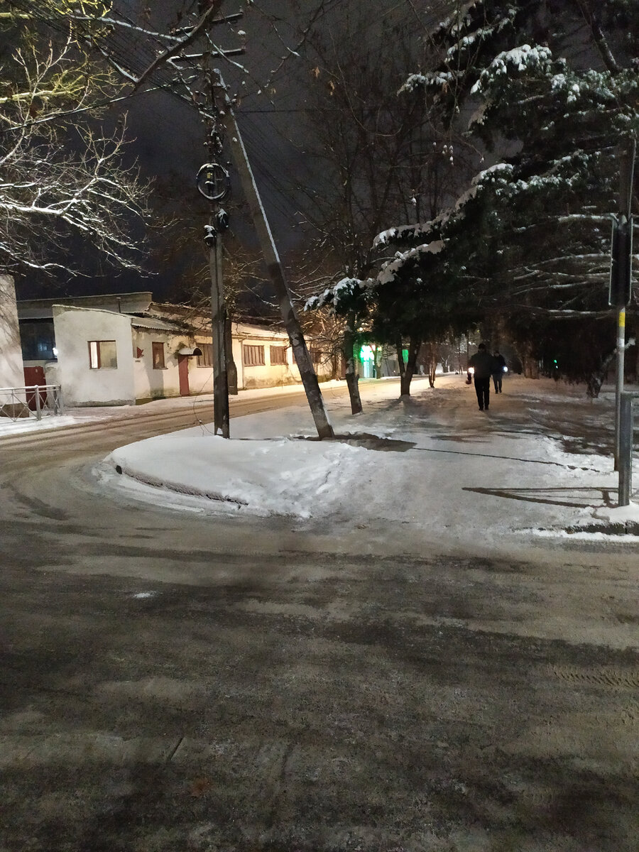 Друзья, я снова с вами! Иду я сегодня домой с работы, задержалась, устала, а на душе так хорошо. И понять не могу, от чего это. То ли пятница навеяла, то ли гора дел с плеч. Смотрю по сторонам и понимаю, от снега радость. Зимой как бывает? - светает поздно, темнеет рано. Ушел - темно, пришел - темно. А на юге, где снег бывает редко, в темное время суток ещё темнее, чем на севере. Всё слякотное и чёрное. На темных улицах, где плохое освещение, или его совсем нет, ничего не видно. То в лужу вступишь, то в яму. К нам пришли холода, и обильный снегопад засыпал всё - дороги, тротуары, дома и деревья. И я, впервые за 2.5 года жизни в Крыму, достала свой зимний пуховик. Теплый, длинный - спорт-шик. Хоть и были в моих крымских зимах и холода и снегопады, но как то обходилась без пуховика, а теперь вдруг захотелось его надеть. Пришлось принять правила игры. Иду я с работы, вокруг, как в Красноярске - всё бело, светло, холодно и скользко. На улице -10. А мне хорошо. Вспомнила детские стихи: "Не