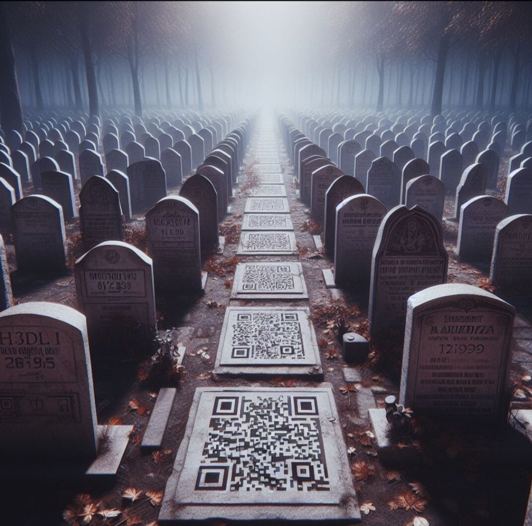 Современные технологии повсюду, и кладбище не исключение Независимо от того, похоронен ли наш любимый человек или кремирован, большое внимание уделяется выбору подходящего способа увековечивания памяти о нем, будь то памятник для него, камень, скамейка, дерево или какой-либо другого способ. Надгробия на кладбищах не сильно изменились за последний 5000 лет, однако, современные технологии пришли и в погребальную культуру. Одной из таких технологий является установка QR-кодов на надгробия. Первоначально QR-коды были созданы для использования в японской автомобильной промышленности для отслеживания транспортных средств в процессе производства. Сейчас QR-коды, или «быстрый ответ», встраиваются во всё: от свадебных приглашений до рекламных щитов в метро. С помощью смартфона каждый может считать информацию, которая закодирована в QR-код. Теперь же такая технология предлагается как способ «особой связи» с потомками. QR-коды предлагают разместить на каменных памятниках на могилах, рядом с дерев