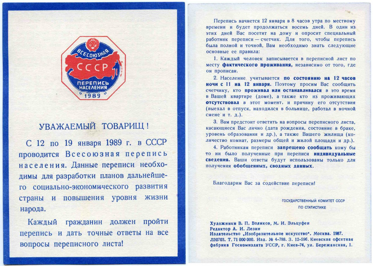 12 января 1989 года началась последняя перепись населения СССР.,