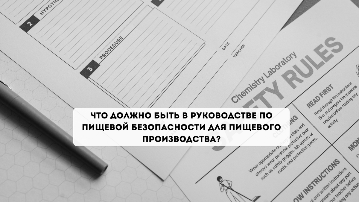 Руководство по пищевой безопасности для пищевого производства Это руководство является основой для обеспечения безопасности и качества продукции на предприятии. Его регулярное обновление и согласование с изменениями в требованиях и практиках - ключ к успешному выполнению целей по пищевой безопасности. Согласно законодательству Российской Федерации и мировым стандартам, руководство по пищевой безопасности должно быть составлено в соответствии с: Эти нормы и законы предоставляют фреймворк и требования, которые необходимо учитывать при разработке руководства по пищевой безопасности для пищевого производства. Если у вас остались вопросы, обращайтесь к нам, мы поможем:
